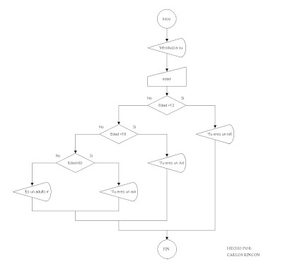 El diagrama, nos pide que introduzcamos la edad, y dependiento de si la persona: